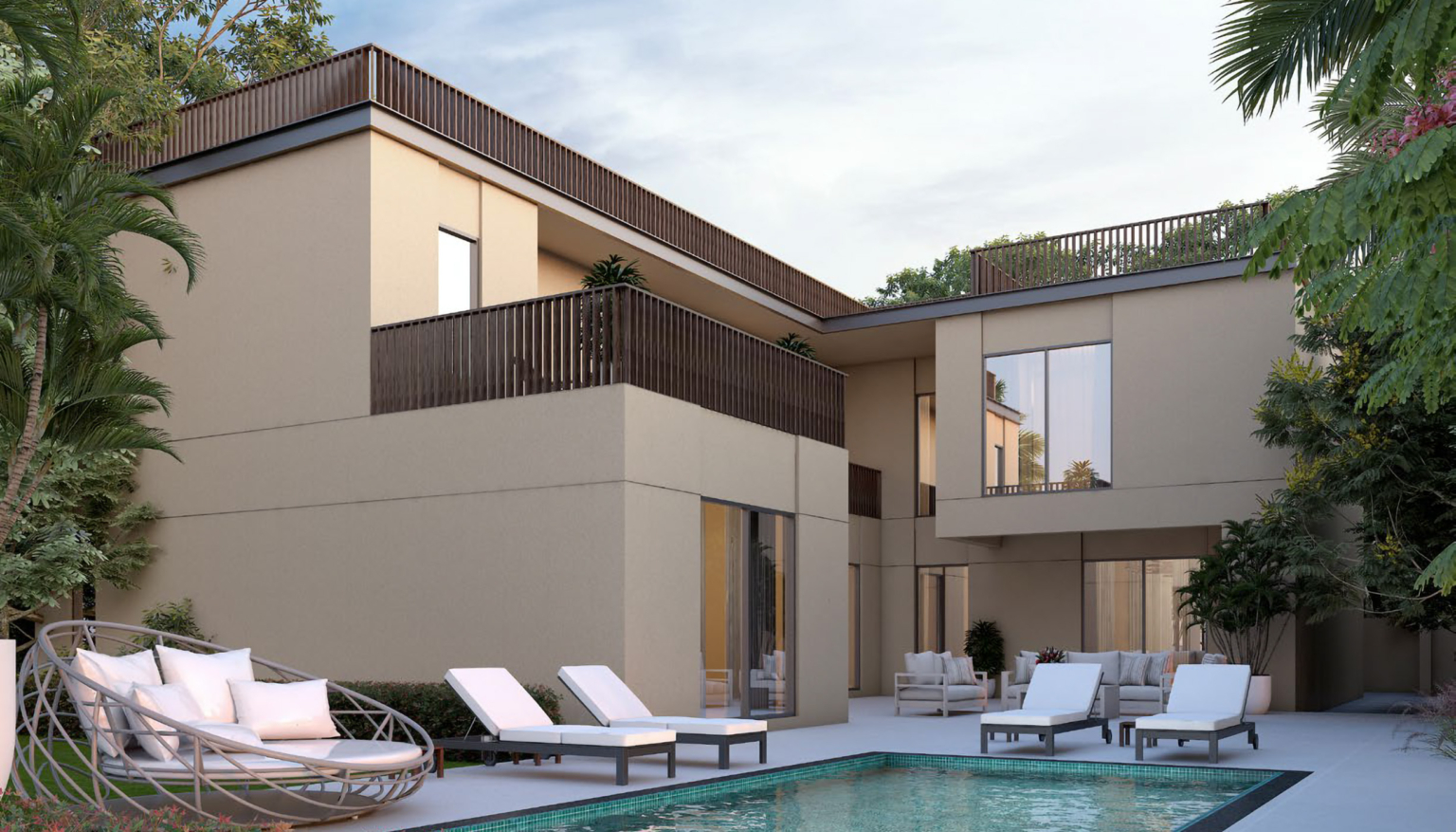 Det premium, grønne samfunnet har en rekke nøye utformede villaer i 4–6-roms konfigurasjoner. Eiendommenes størrelse varierer fra 4 958 sq. ft til 7 186 sq. ft, mens tomtearealene er 20–30 % større, fra 6 216 sq. ft til 8 718 sq. ft. Hver enhet vil ha privat svømmebasseng, garasje, gjestetoalett, lagringsrom, kontor og hage. Kjøkkenene vil være utstyrt med innebygde apparater fra Bosch/Siemens eller et lignende premiummerke.